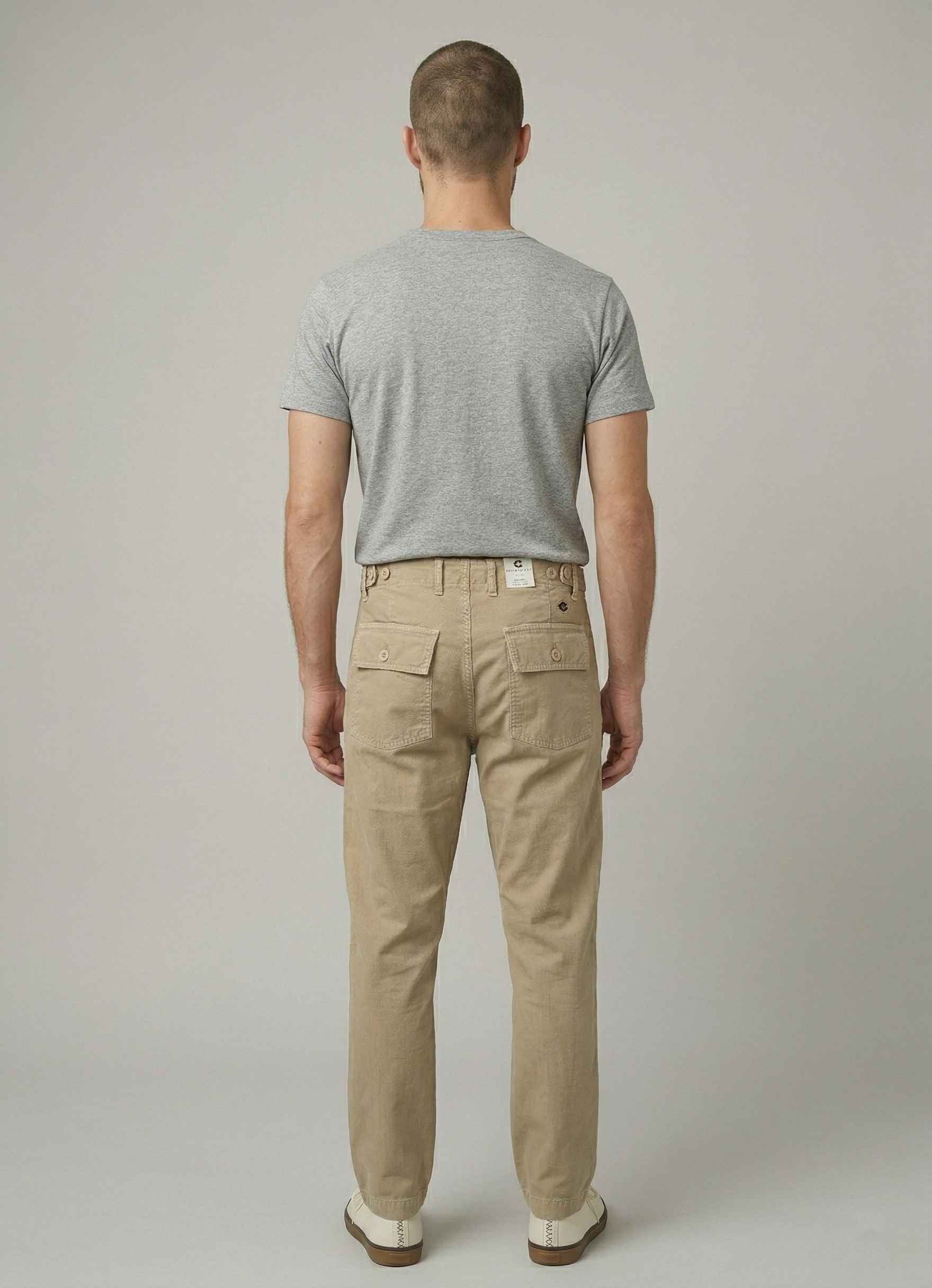 Il pantalone modello Fatigue Degrasse di Chesapeake’s nel colore sand è il perfetto equilibrio tra stile casual e funzionalità contemporanea. Realizzato con materiali di alta qualità, questo pantalone si distingue per il suo design ispirato al workwear militare, rivisitato in chiave moderna per un look versatile e raffinato. La tonalità sand, neutra ed elegante, lo rende ideale per ogni stagione e facilmente abbinabile a outfit sia casual che smart-casual.