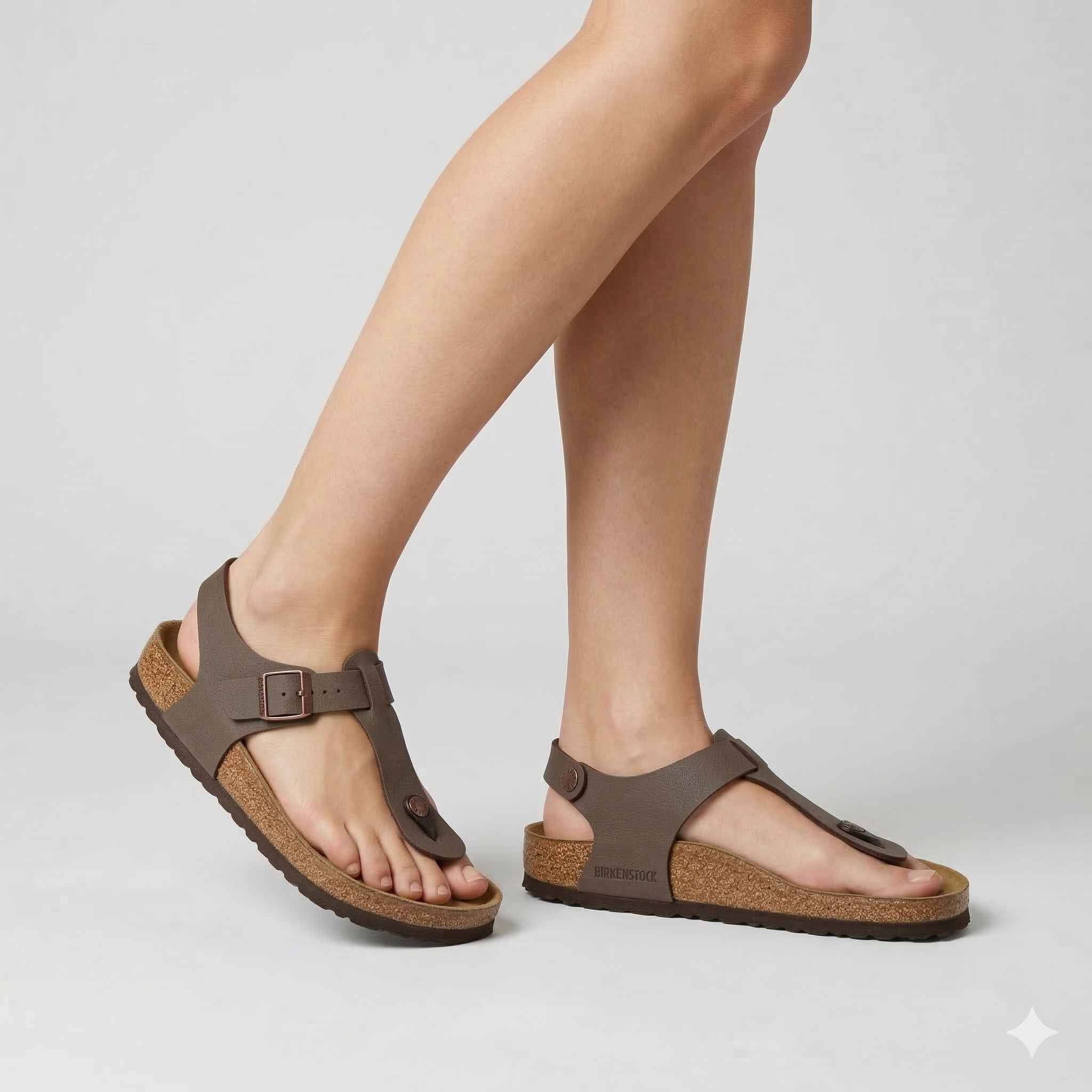 Il popolare sandalo BIRKENSTOCK Kairo con plantare dalla forma anatomica in sughero e lattice e sottopiede avvolgente in pelle scamosciata conquista per il riuscito connubio di design e comfort. Il sandalo ha un cinturino per il tallone e sul dorso del piede regolabile individualmente tramite una fibbia di metallo. La tomaia è n pregiata pelle Nabuk oliata lavorata senza cuciture.