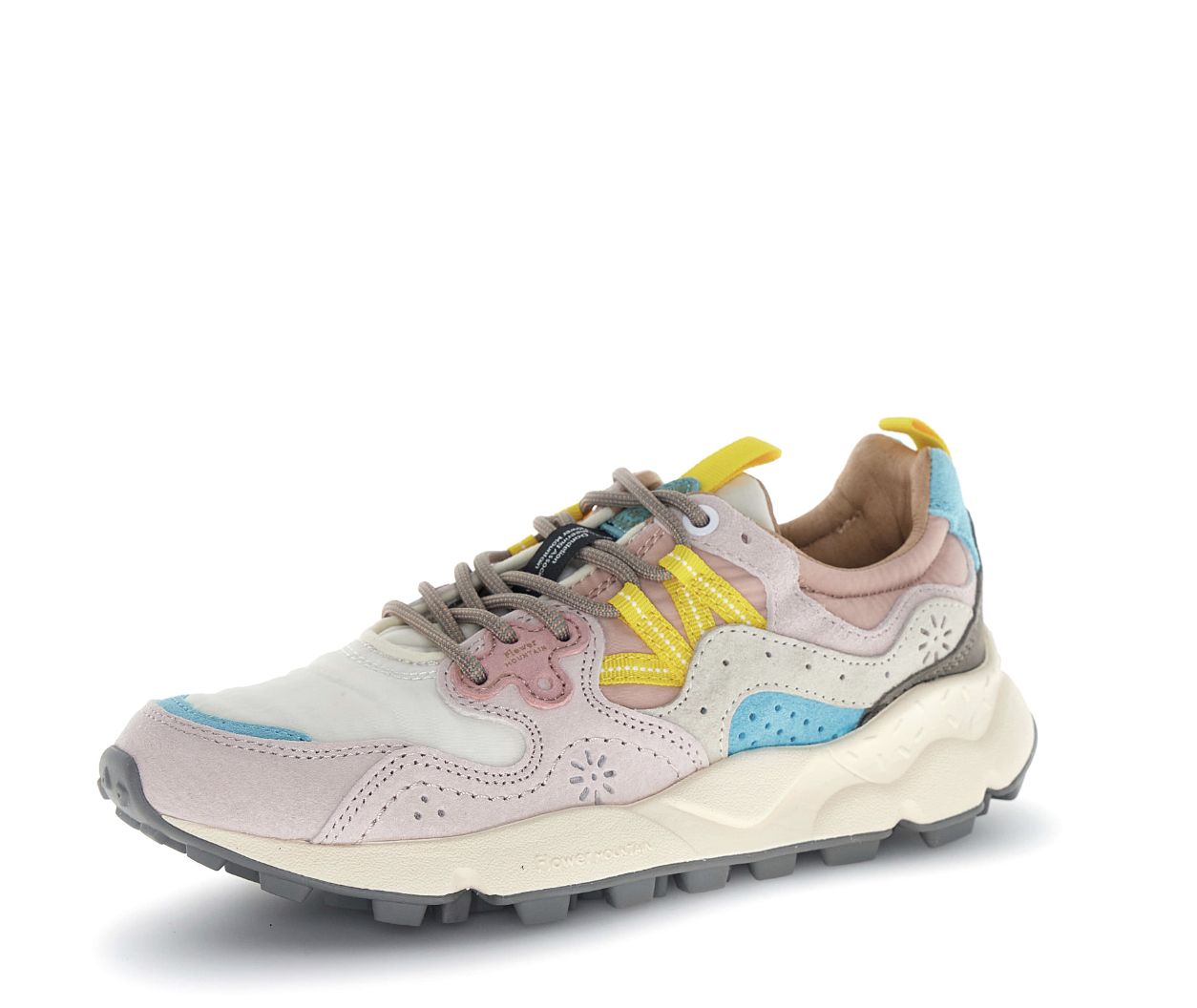 Femminilità e spirito outdoor si fondono in un design attuale, perfetto da abbinare alle mise active quanto alle longuette più glamour: Yamano è la sneaker dalla tomaia in pelle caratterizzata da inserti in tessuto tecnico e dall'iconico occhiello dalla forma sagomata, ispirata al fiore del tarassaco. Le linee evocano le calzature trekking, con suola in gomma ultra leggera e battistrada dentellato. La soletta interna in sughero naturale antibatterico assicura benessere al piede e comfort all day long.