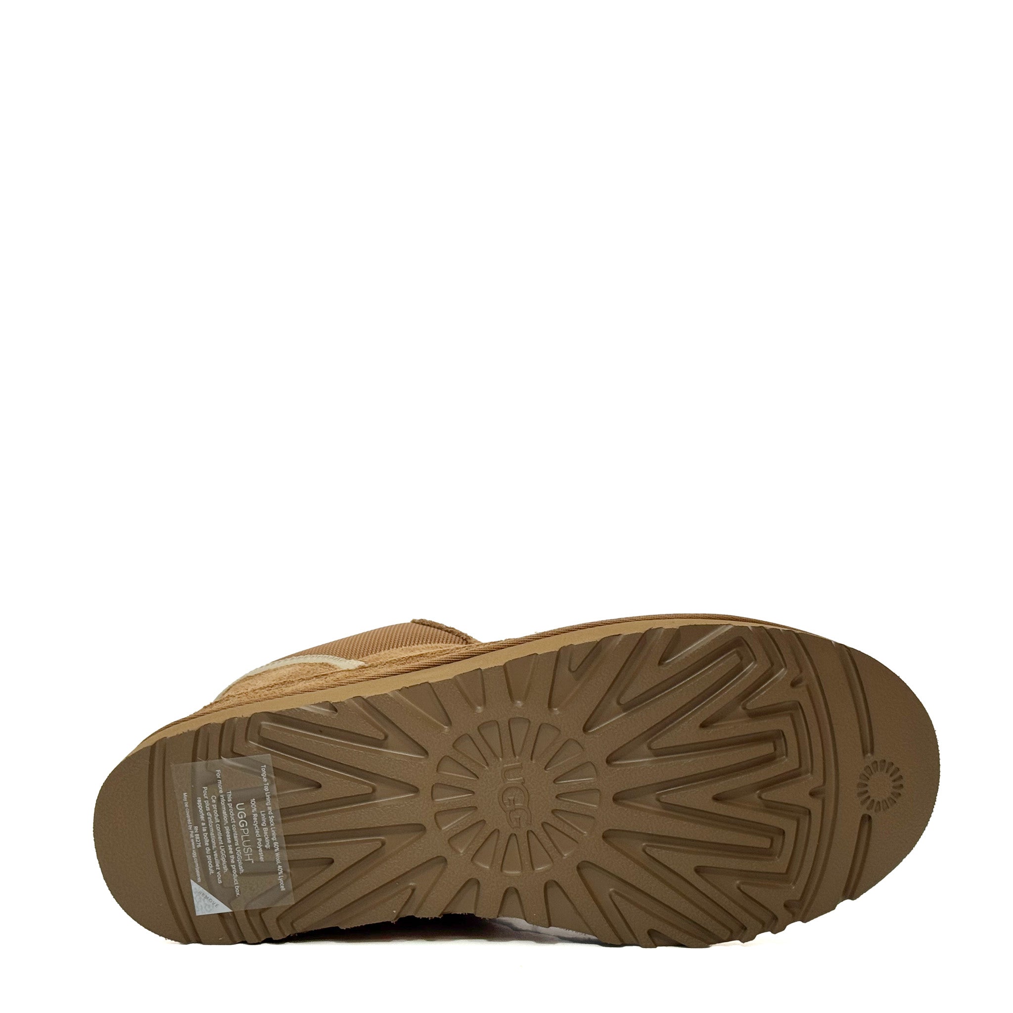 Tomaia in camoscio e tessuto realizzato in fibre di nylon riciclato (100%), cinturino in tessuto resistente sul tallone, applicazione con logo UGG®, collarino imbottito, linguetta oversize imbottita
