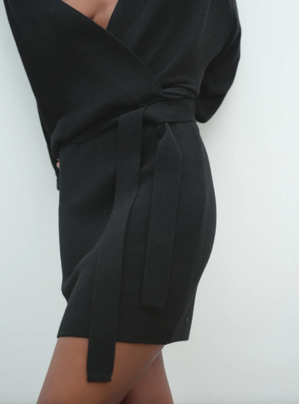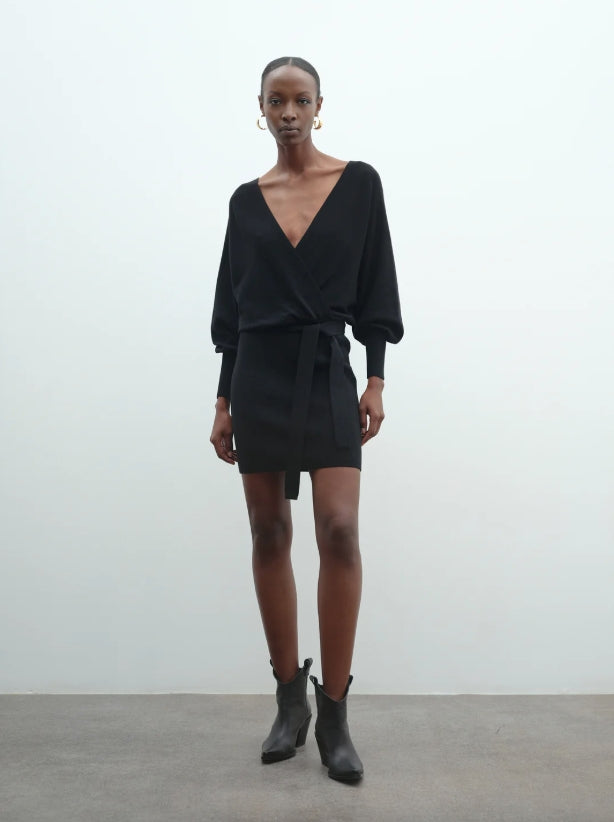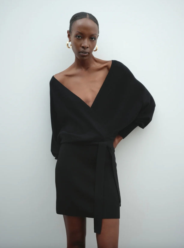 Abito corto in tubico Radha dalla texture compatta e confortevole, pensato per valorizzare la silhouette con stile. Lo scollo profondo dona un tocco sensuale ed elegante, mentre le maniche a palloncino aggiungono volume e femminilità. Un capo dal carattere deciso, perfetto per occasioni speciali o look da sera. Da abbinare a tacchi o stivali per un outfit audace e sofisticato.