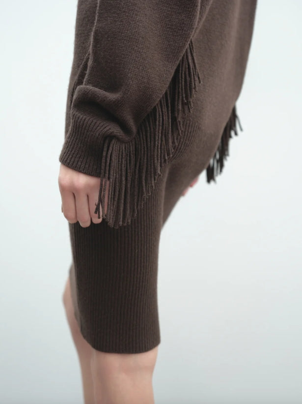 Abito in maglia scollo V frange AKEP 11021 - Testa di moro