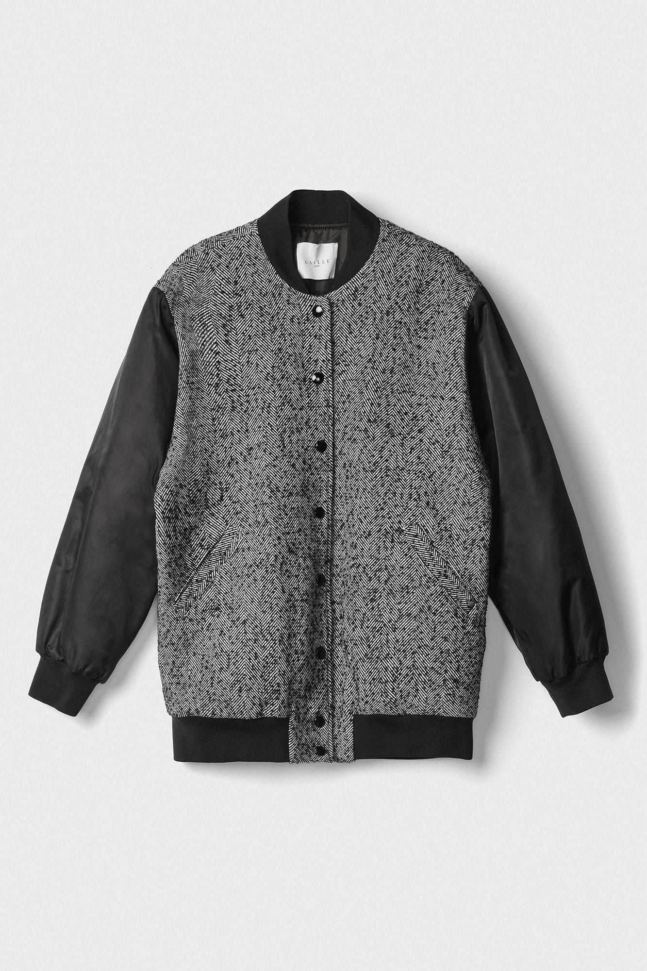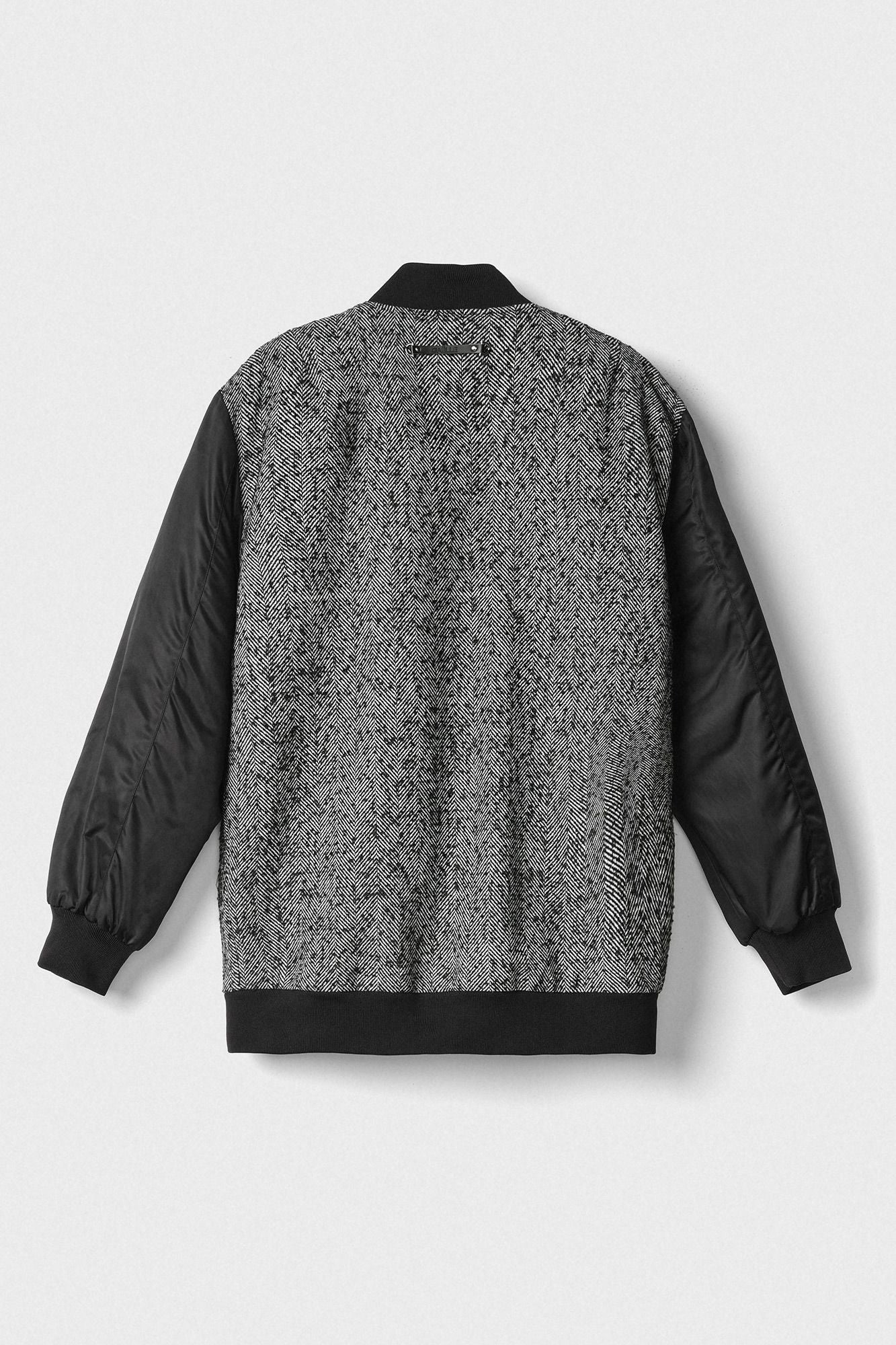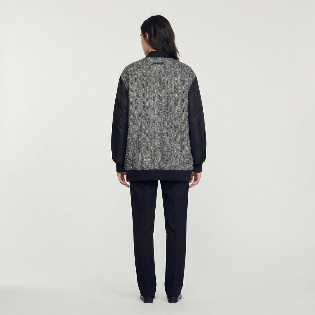 Bomber lungo in panno e maniche in nylon - tessuto panno spigato