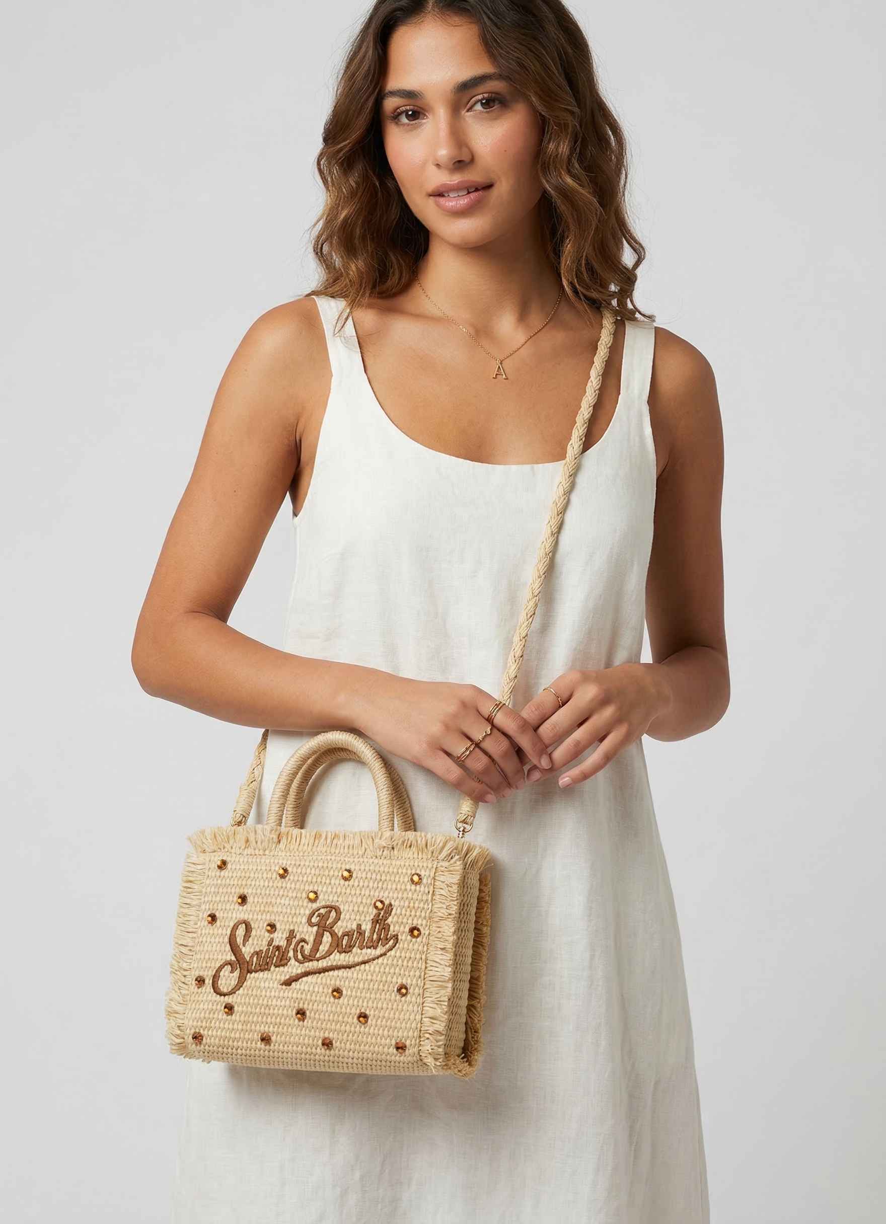 Borsa a mano SAINT BARTH VANITY MINI STRAW 02747L - Strass Marrone