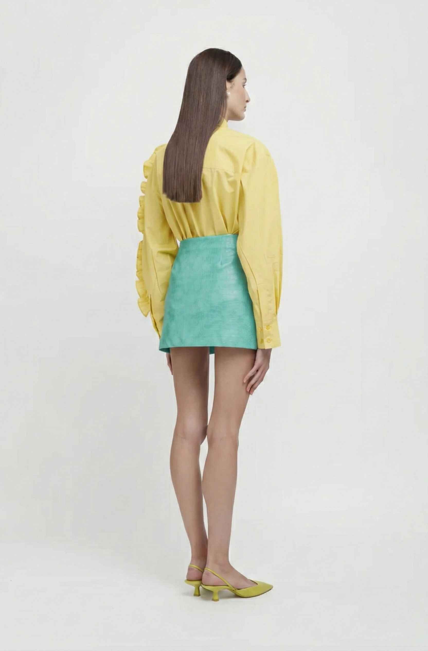 Camicia in popeline 100% cotone, fit over e dettaglio con maxi ruches applicate.