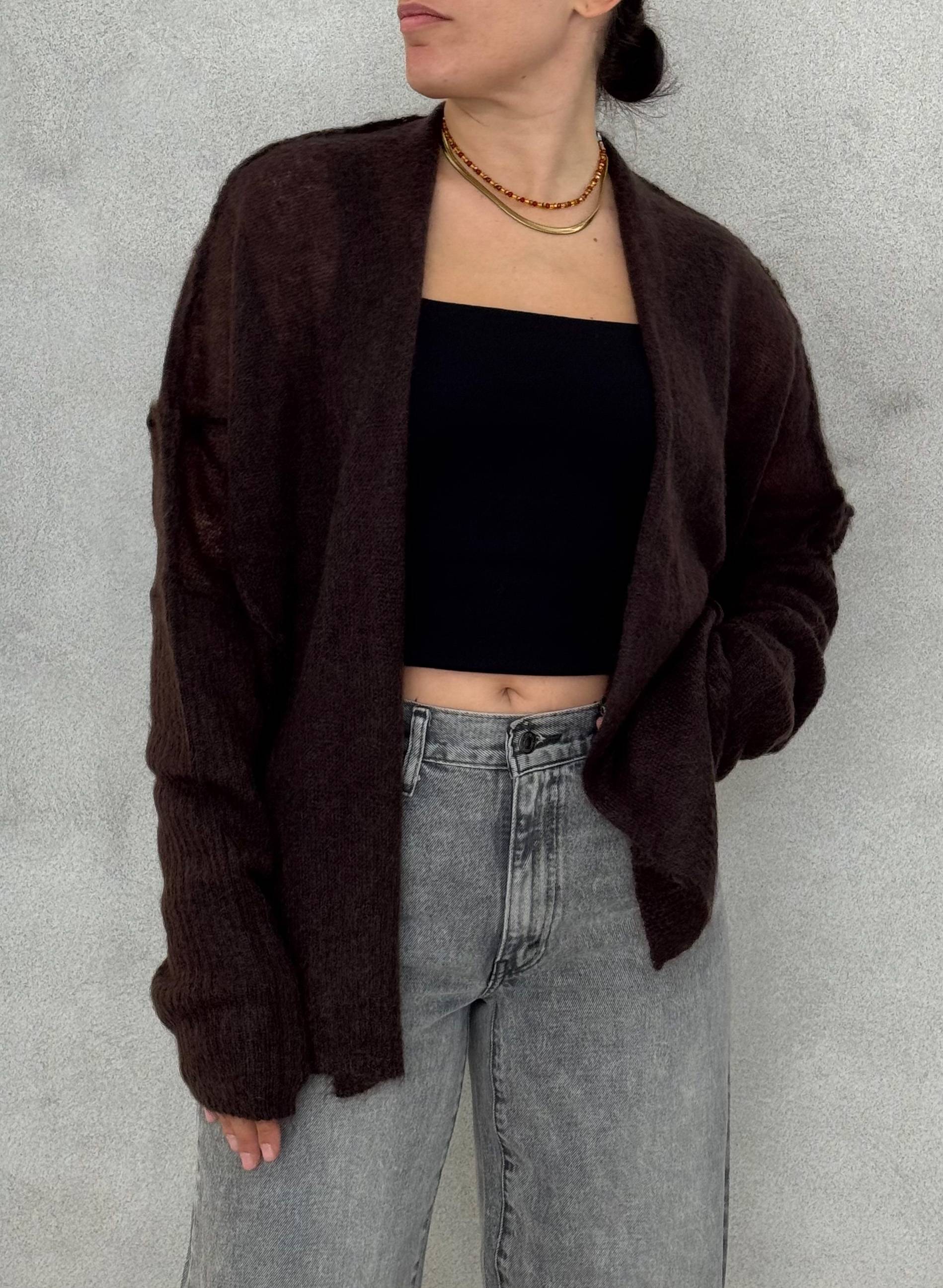 Completa il tuo guardaroba con un capo essenziale e raffinato: il cardigan marrone KNITEREE è la scelta perfetta per chi ama uno stile sobrio, naturale e contemporaneo.