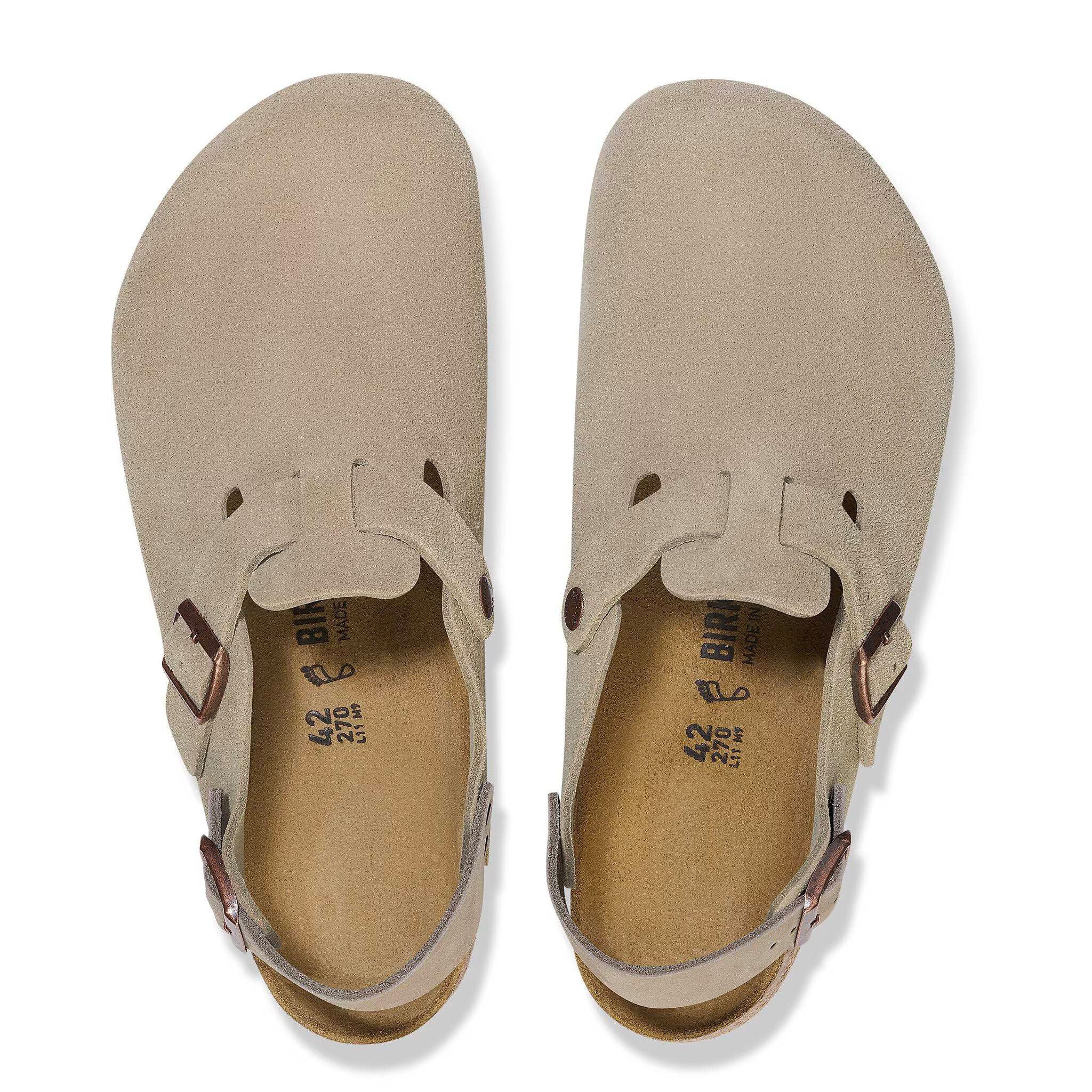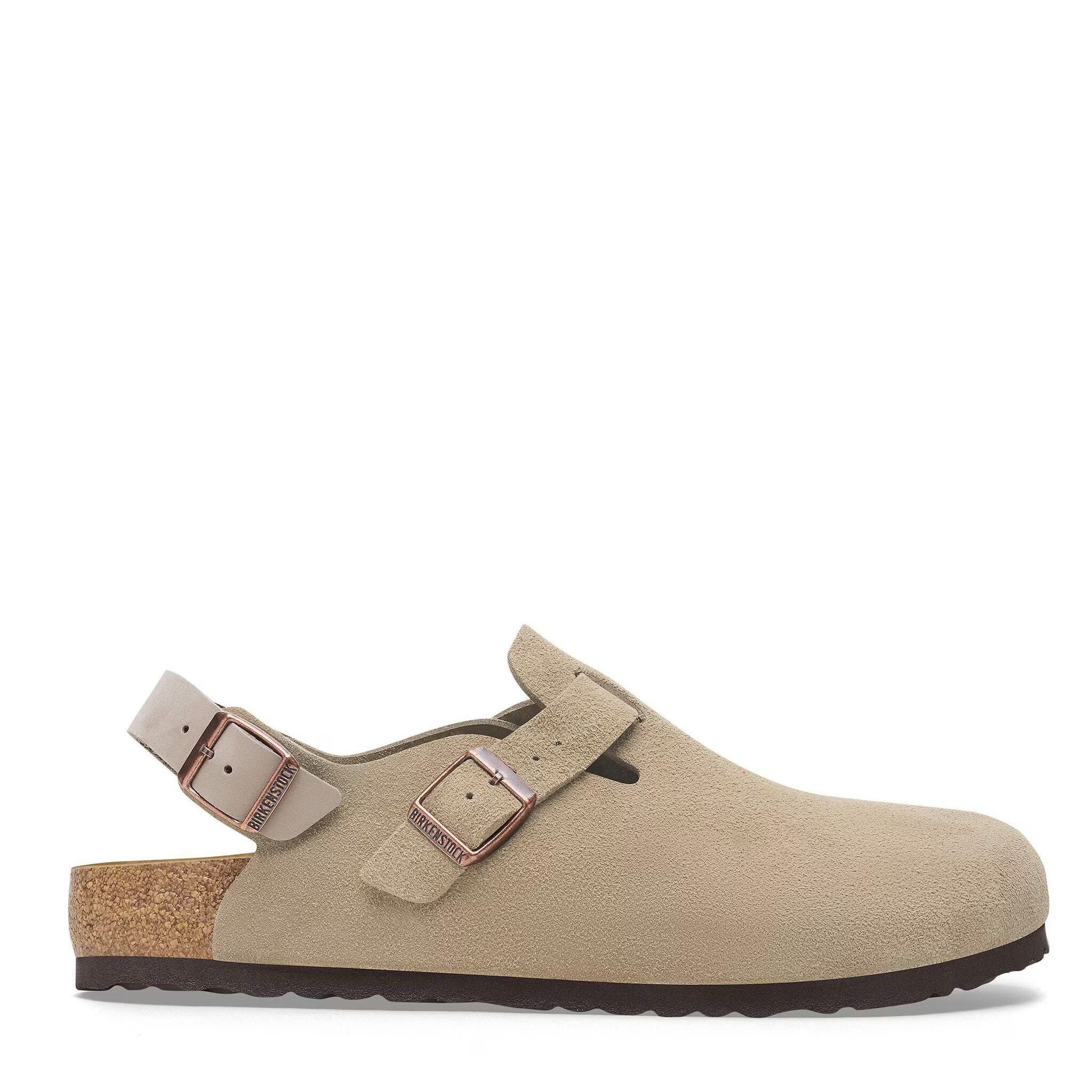 BIRKENSTOCK Tokio è una variazione del classico Boston. Il modello è caratterizzato dal cinturino per il tallone e può essere indossato tutto l’anno. La tomaia è in pelle scamosciata particolarmente morbida che aderisce al piede come una seconda pelle.