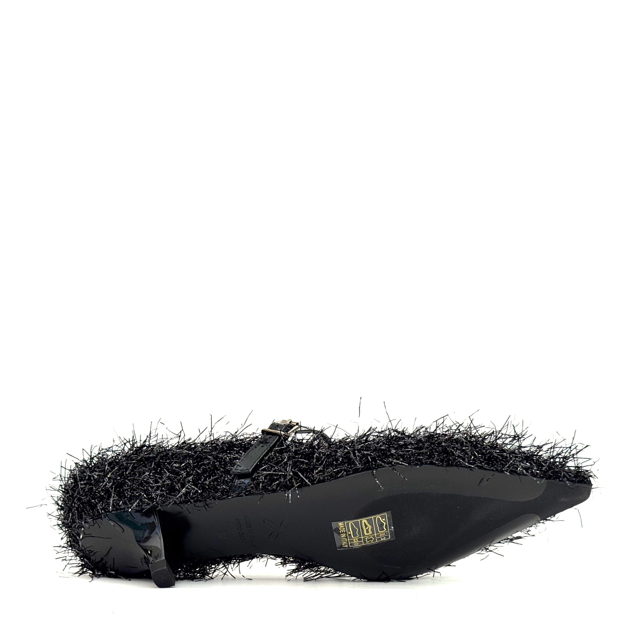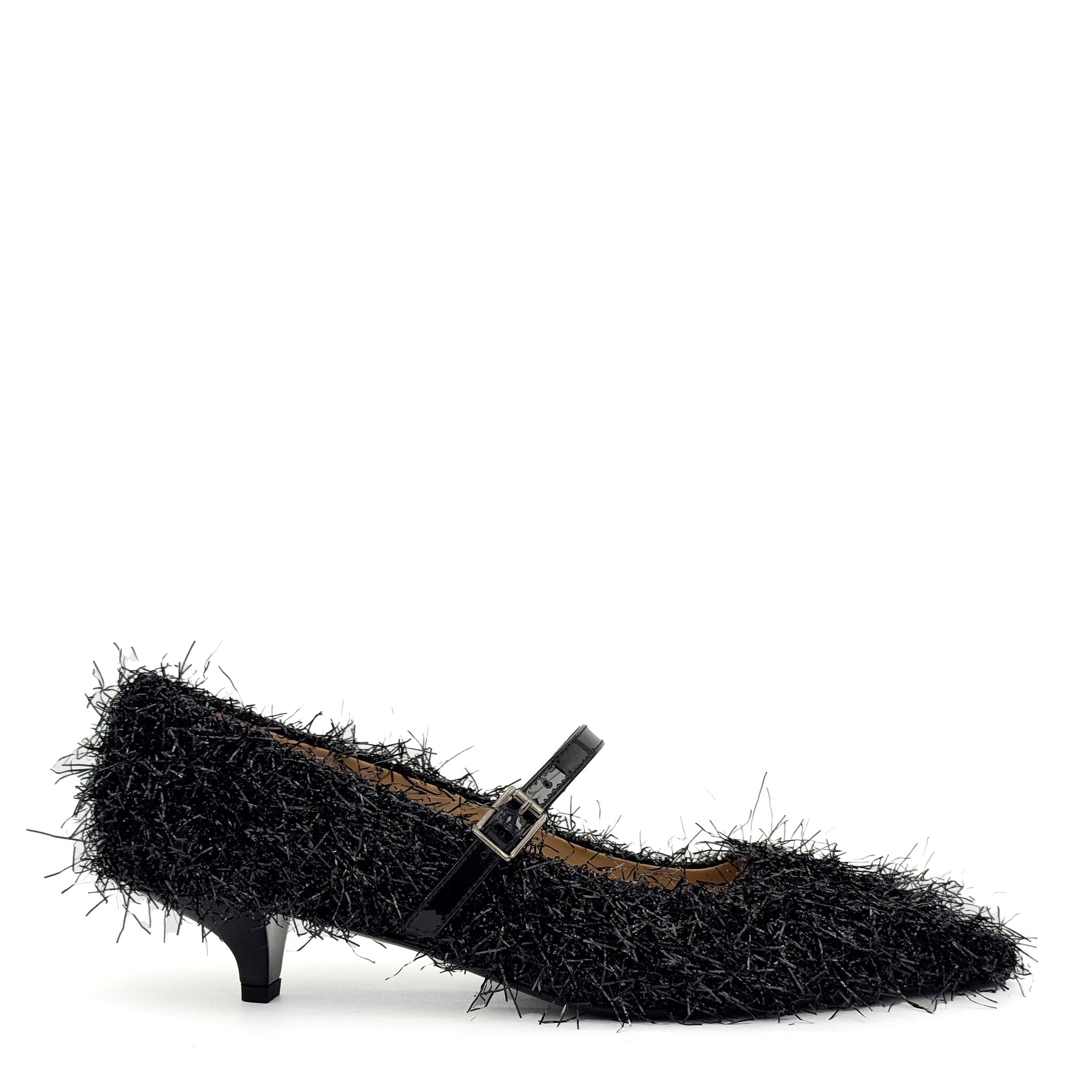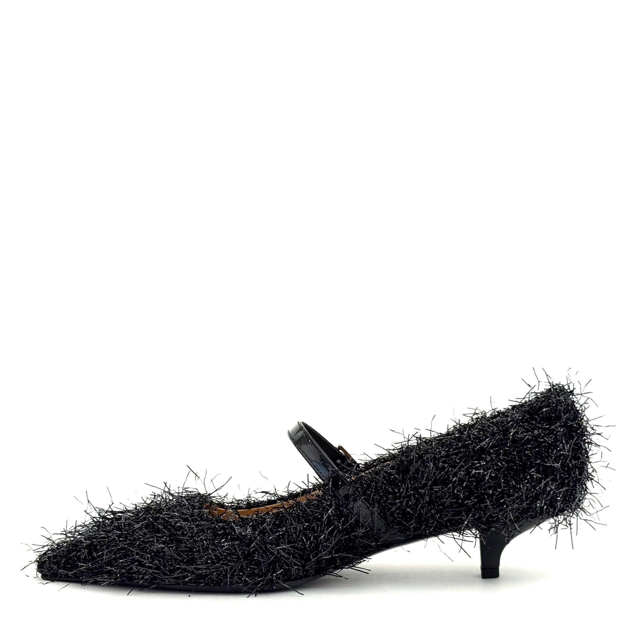 Eleganti décolleté da donna realizzate in pregiato tessuto Charleston, impreziosite da un raffinato cinturino in vernice che assicura una calzata stabile e femminile. Il tacco basso da 35 mm offre...
