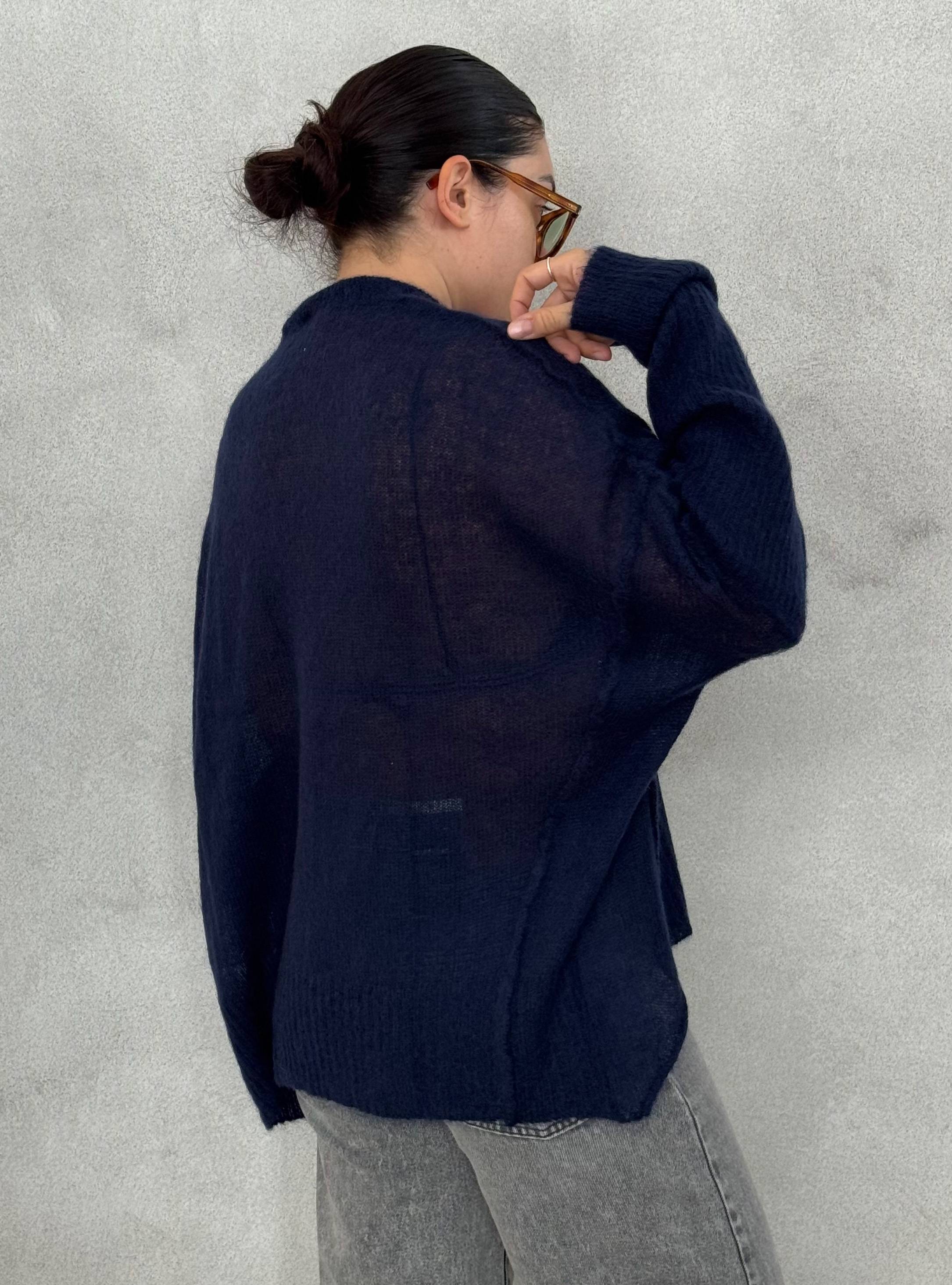 Il maglioncino over Voile KNITEREE KNW2510MA nella tonalità Night (blu notte) è la scelta ideale per chi desidera un capo comodo, versatile e raffinato. Realizzato in voile leggero, questo maglione oversize unisce comfort e stile minimal, adattandosi perfettamente a look casual o più ricercati.
