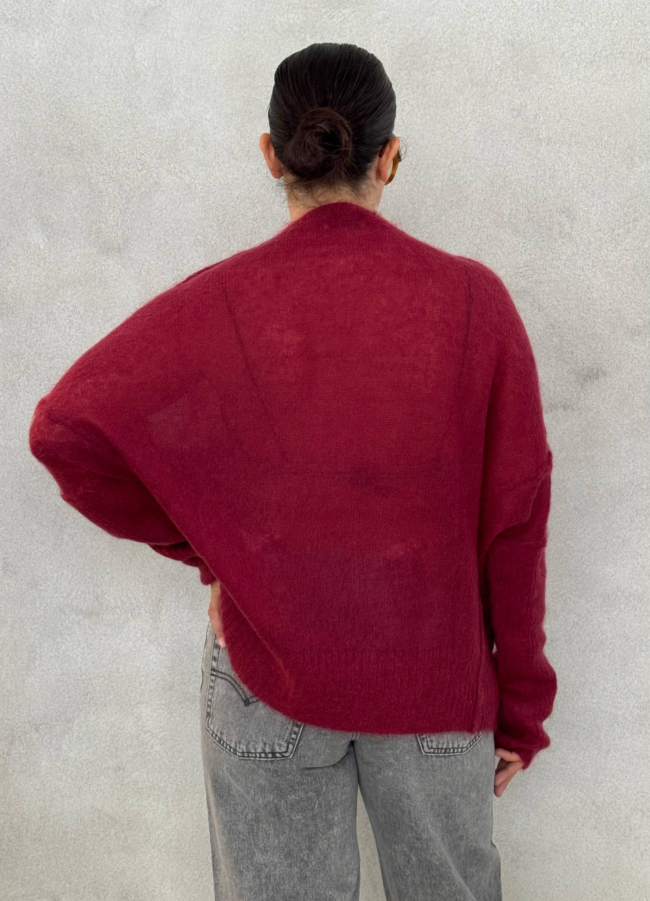 Rivolto a chi ama uno stile essenziale, fluido e contemporaneo, il maglioncino over rosso KNITEREE è perfetto per affrontare la stagione con un capo caldo, pratico e dal grande impatto visivo.
