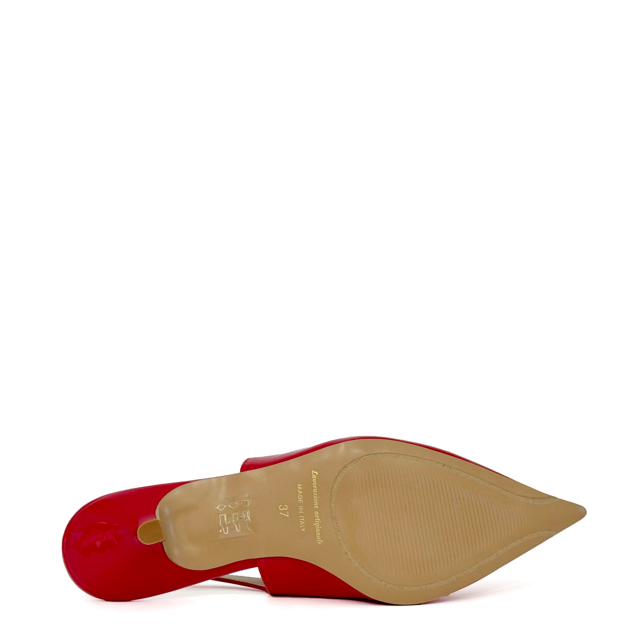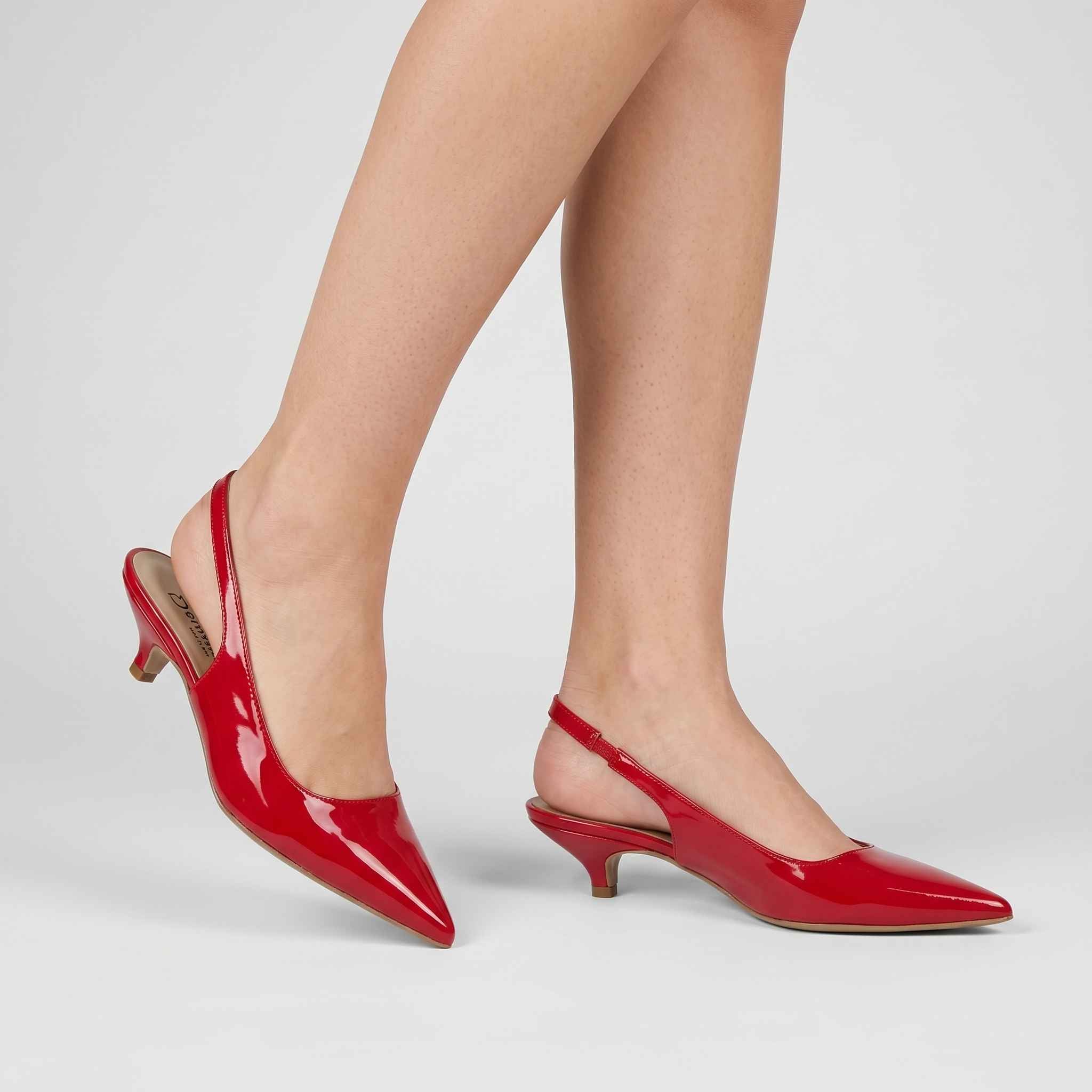 Décolleté in vernice lucida con laccio dietro il tallone