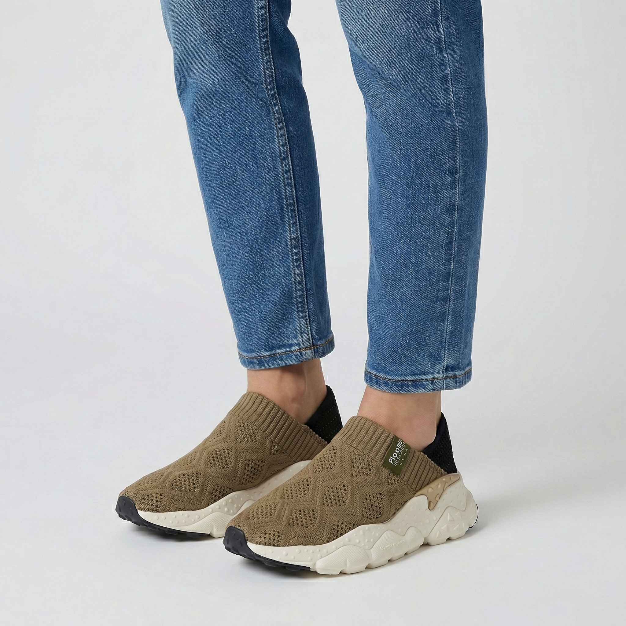 Il perfetto compromesso tra comfort, stile essenziale e animo sportivo: nuova proposta Flower Mountain per la sneaker slip on, con tomaia in morbido tessuto e tallone in tessuto tecnico stretch per una calzata veloce. Il comfort è assicurato dalla soletta interna in lana dalla suola in gomma ultra leggera, con sagomature laterali e battistrada personalizzato.