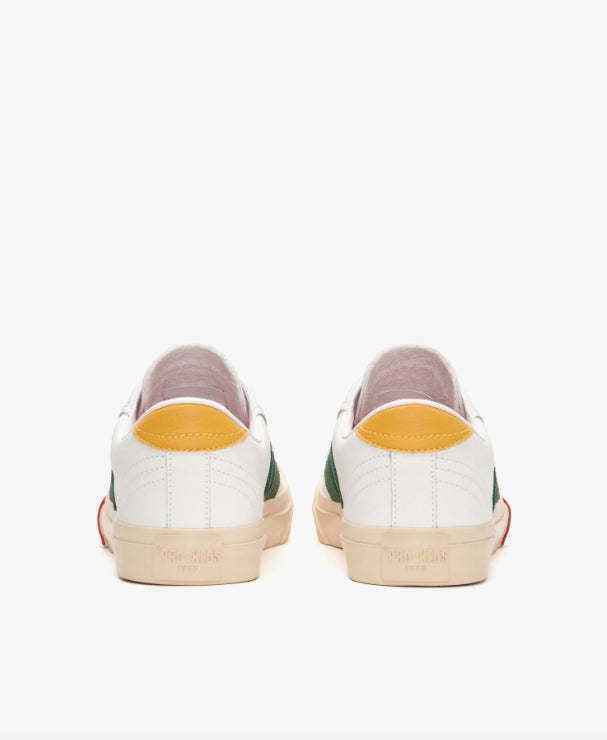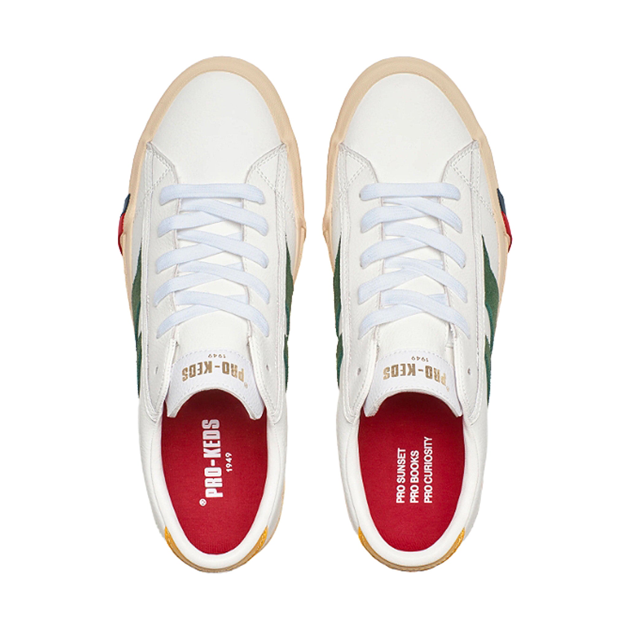 La Royal Classic trae ispirazione dall'archivio ®Pro-Keds 1949. La tomaia in pelle è arricchita da inserti in suede. La fodera in pelle assicura un comfort superiore, mentre la fascia elastica interna facilita la calzata. La suola in gomma, con l'iconica logatura rosso-blu che prosegue sotto il battistrada, combina estetica iconica e funzionalità. Una sneaker che celebra l'eredità del brand con un design senza tempo.
