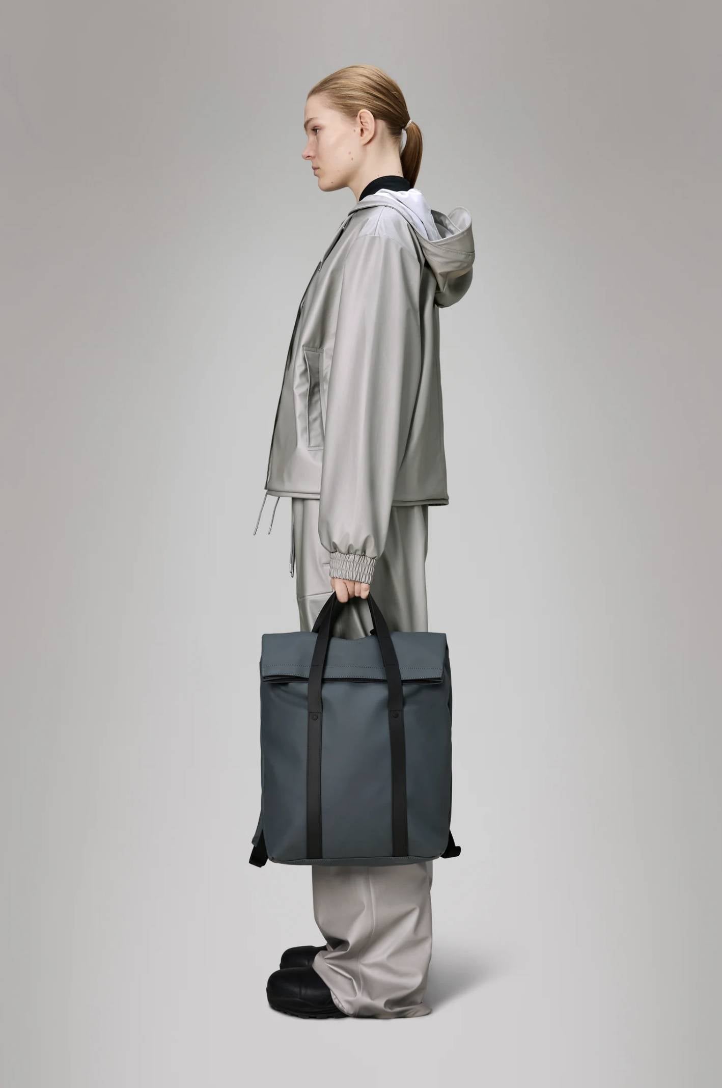 La 2 Way Tote Backpack è realizzata con l'iconico tessuto PU di Rains, per garantire resistenza, durata e morbidezza al tatto.